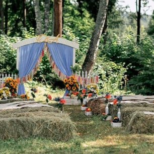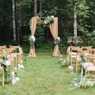 Помните о том, что оформление свадеб возможно не только живыми цветами, которые порой стоят баснословно дорого. Сейчас существуют сотни вариантов украшения с использованием ткани, лент, мешковины, бумаги, деревянных спилов и прочих материалов. Самое главное, чтобы свадебный декор идеально соответствовал стилю и тематике вашего праздника, а из чего он будет выполнен, по сути, не так уж и важно.